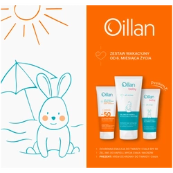 Oillan Zestaw Wakacyjny - Ochronna emulsja do twarzy i ciała z filtrem SPF50 100ml 100 ml + Żel 3w1 do mycia 200ml + Krem 75ml