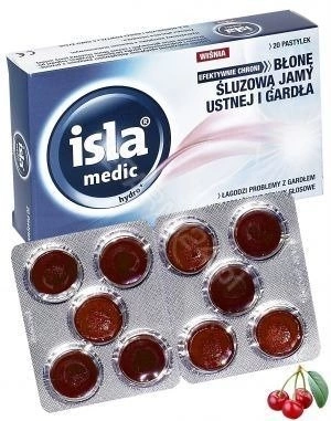 - Pastylki Isla medic hydro+, wiśnia to hydrożelowy kompleks, który skutecznie łagodzi objawy towarzyszące zapaleniu błony śluzowej jamy ustnej i gardła.