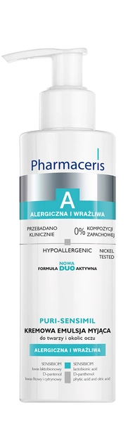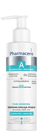 - Pharmaceris A Puri-Sensimil to emulsja do codziennego oczyszczania i demakijażu twarzy i okolic oczu dla skóry nadwrażliwej oraz podatnej na alergię.