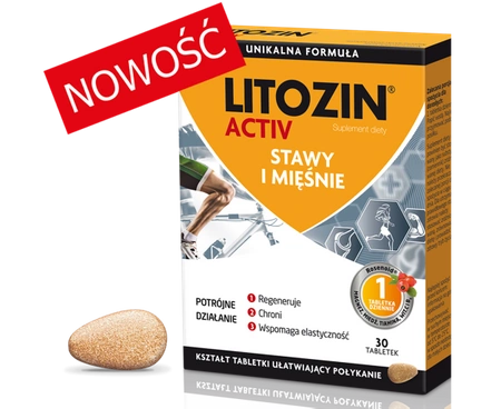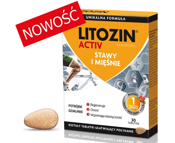 LITOZIN® Active to unikalny suplement diety opracowany specjalnie dla osób aktywnych fizycznie (niezależnie od intensywności czy częstotliwości wysiłku). Dzięki połączeniu w jednej tabletce składników ważnych dla zdrowia stawów i mięśni wraz z Rosenoidem® – kompleksem składników bioaktywnych wyizolowanych z dzikiej róży i witaminy C – LITOZIN® Activ jest wygodnym uzupełnieniem codziennych ćwiczeń.
