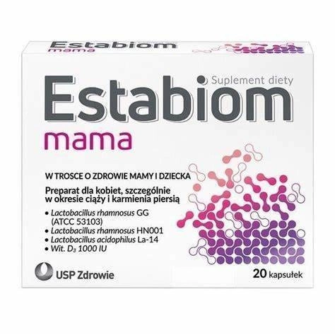 Estabiom Mama to suplement diety dla przyszłych mam, który dostarcza jeden z najlepiej przebadanych szczepów bakterii jelitowych, Lactobacillus rhamnosus GG oraz 2 szczepy bakterii ginekologicznych. Dodatkowo preparat wzbogacono witaminą D3, uwzględniając jej zwiększone zapotrzebowanie w trakcie ciąży.