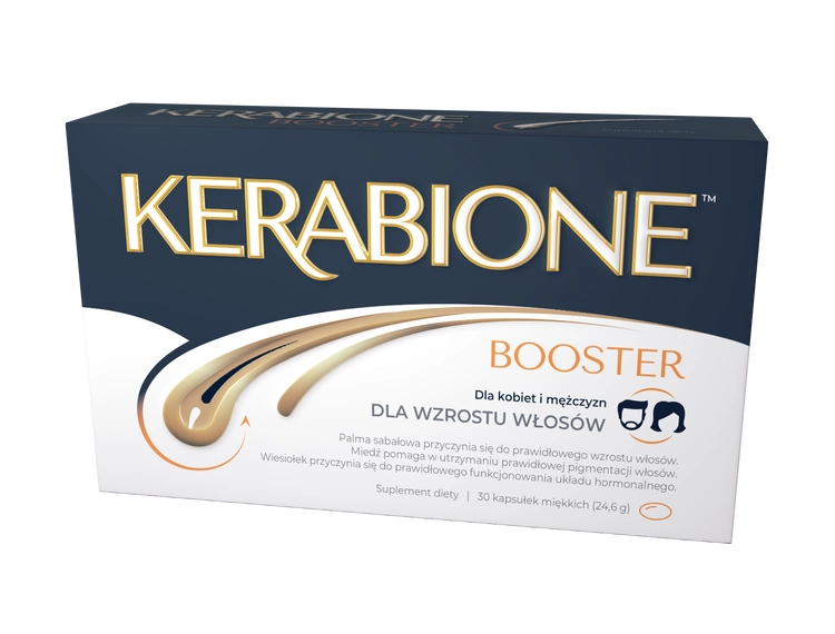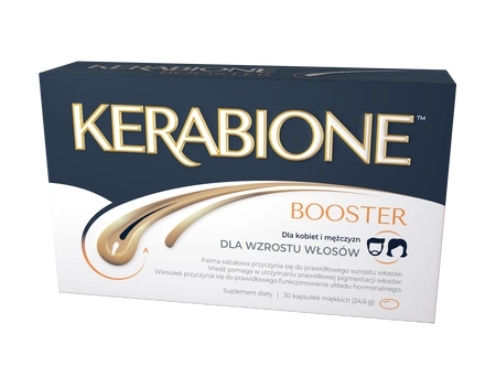 Kerabione Booster to suplement diety dla mężczyzn, chcących wzmocnić swoje cienkie, słabe i skłonne do wypadania włosy. Stanowi połączenie wyciągów roślinnych, witamin A i E oraz miedzi, które pomagają utrzymać ich prawidłową kondycję oraz wspomagają funkcjonowanie komórek skóry.