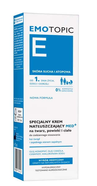 EMOTOPIC Krem natłuszczający MED+ na twarz, powieki i ciało do codziennego stosowania, 75 ml