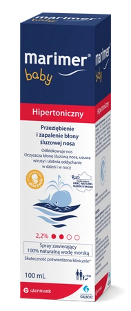 Marimer baby hipertoniczny jest zalecany do stosowania u niemowląt powyżej 6 miesiąca życia i u dzieci w celu oczyszczania i udrażniania jam nosowych, zwłaszcza w przypadku kataru, zapalenia zatok, oraz po zabiegach pooperacyjnych. Jest odpowiedni, jako uzupełnienie leczenia infekcji górnych dróg oddechowych.