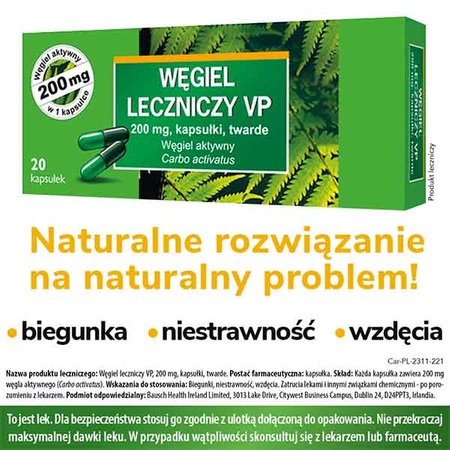 Węgiel leczniczy VP 200 mg kapsułki twarde, 20 sztuk