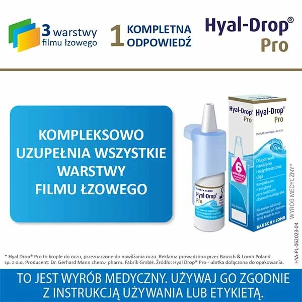 Informacje dotyczące stosowania produktu Hyal-Drop Pro: