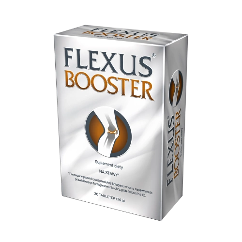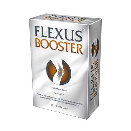 Flexus Booster to większa porcja składników w jednej tabletce. Zawiera BioCell Collagen, opatentowany kompleks związków korzystnie wpływających na stan, kondycję i funkcjonowanie tkanki chrzęstnej. Siarczan chondroityny, kwas hialuronowy oraz Osteol (różne proteoglikany) uzupełniają ubytki w macierzy międzykomórkowej, dzięki czemu zmniejszają podatność chrząstek na urazy i deformacje. Witamina C stymuluje endogenną syntezę kolagenu - podstawowego białka budulcowego tkanki chrzęstnej i kostnej, natomiast hydrolizat dostarcza niezbędne do niej składniki.