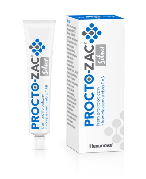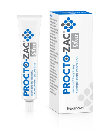 Krem Procto-Zac Silver to wyrób medyczny z aktywnym srebrem TIAB na hemoroidy i rany odbytu. Może być stosowany przy hemoroidach, zarówno zewnętrznych, jak i wewnętrznych, przy szczelinach odbytu oraz na rany powstałe w wyniku leczenia chirurgicznego, w celu wspomagania procesów regeneracji i leczenia, łagodzenia bólu, podrażnienia i świądu.
