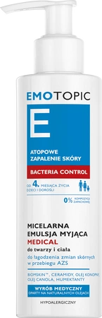 EMOTOPIC Bacteria Control Micelarna emulsja myjąca Medical do twarzy i ciała, 190 ml