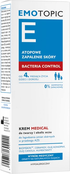 EMOTOPIC Bacteria Control Krem Medical do twarzy i okolic oczu, 50 ml