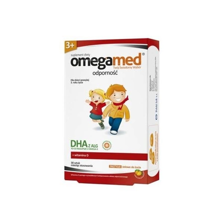 Omegamed® Odporność to preparat opracowany w celu wzmocnienia odporności dzieci. Zawiera witaminę D, która przyczynia się do prawidłowego funkcjonowania układu odpornościowego, a także DHA (to co najlepsze z Omega-3).