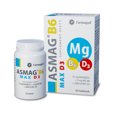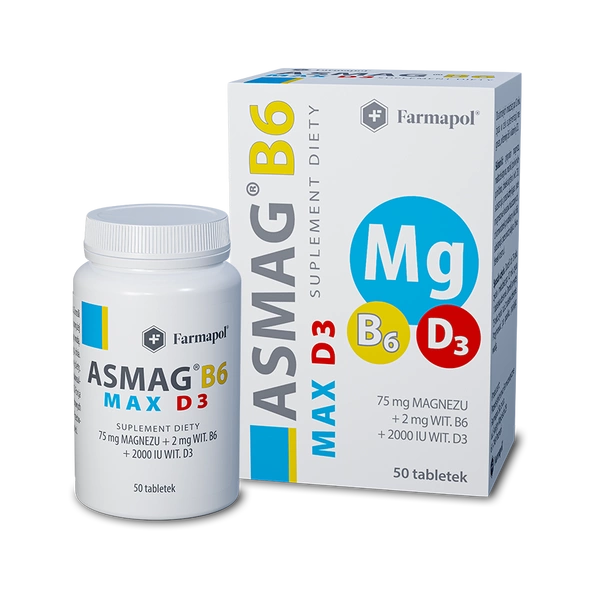 Asmag B6 Max D3 - Magnez, Wit. B6 i Wit. D3 - tabletki, 50 sztuk