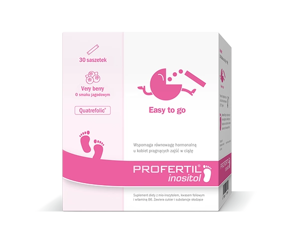 - Dla kobiet 35+ z PCOS, które starają się zajść w ciążę, polecamy PROFERTIL® female w połączeniu z PROFERTIL® inositol – 1 saszetka dziennie
