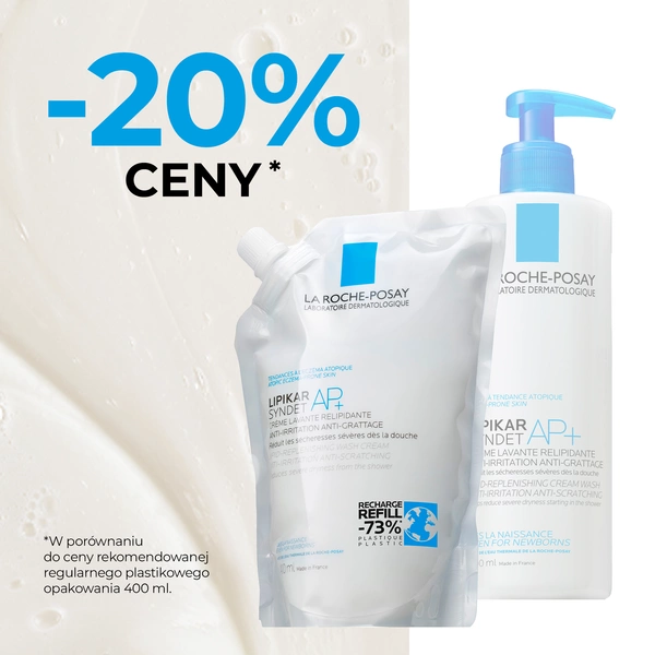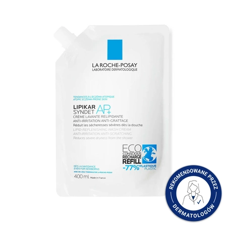 LA ROCHE-POSAY Lipikar Syndet AP+ Ultradelikatny krem myjący do ciała, opakowanie uzupełniające Refill, 400ml