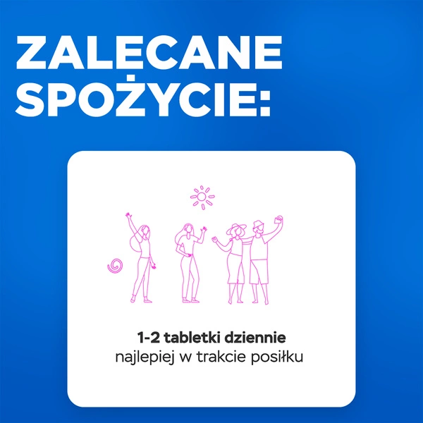 Dorośli: 1-2 tabletki dziennie, w trakcie posiłku.