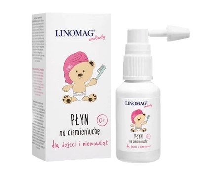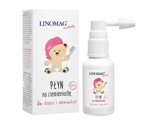 LINOMAG® Płyn na ciemieniuchę łagodzi objawy łojotokowego zapalenia skóry (tzw. ciemieniuchy) w obrębie skóry głowy dziecka.