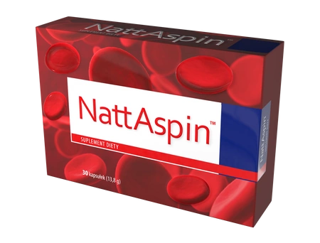 NattAspin to suplement diety zawierający 100 mg NATTOKINAZY (2000 FU, jednostek degradacji fibryny), enzymu, który powstaje w wyniku fermentacji nasion soi z użyciem szczepu Bacillus subtilis. NattAspin został dodatkowo wzbogacony ekstraktem z owoców oliwki europejskiej, bogatym w HYDROKSYTYROZOL. Hydroksytyrozol jest jednym z najsilniejszych przeciwutleniaczy.