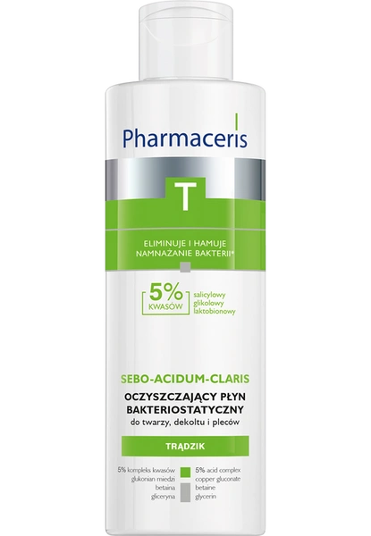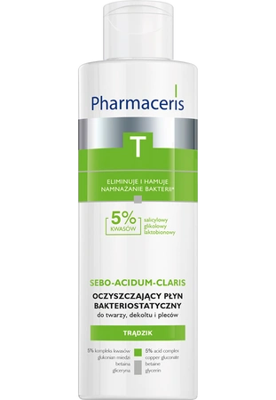 Pharmaceris T Sebo-Acidum-Claris, Oczyszczający płyn bakteriostatyczny do twarzy, dekoltu i pleców, 190ml