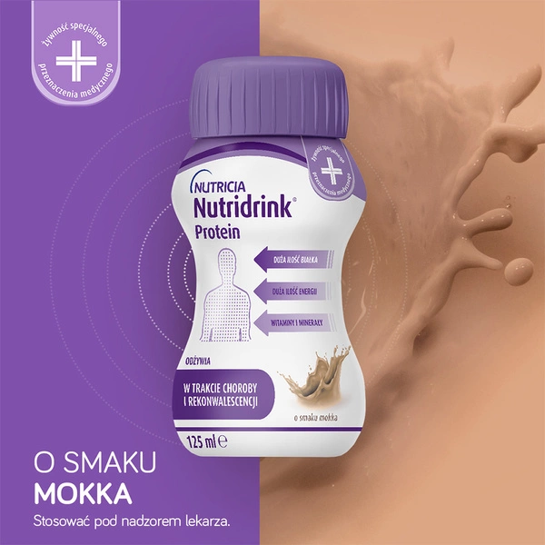 Nutridrink Protein to żywność specjalnego przeznaczenia medycznego. Do postępowania dietetycznego w niedożywieniu i ryzyku niedożywienia związanym z chorobą, szczególnie u pacjentów ze zwiększonym zapotrzebowaniem białkowym. Stosować pod nadzorem lekarza.