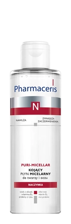 Innowacyjna formuła płynu oparta na strukturze micelarnej, skutecznie usuwa makijaż i zanieczyszczenia aktywnie zapobiegając podrażnieniom towarzyszącym oczyszczaniu skóry. Preparat bogaty w witaminę B3 przyspiesza proces regeneracji naskórka, zmniejszając zaczerwienienia. Kompleks protein z ryżu oraz wosku z mango zapewnia odżywienie oraz właściwe nawilżenie skóry. Sposób użycia: Nasączyć płatek kosmetyczny płynem oraz delikatnie przemyć skórę twarzy i oczu. Czynność powtarzać aż wacik będzie czysty. Następnie nałożyć odpowiedni krem z serii Pharmaceris N. Polecany do stosowania codziennie rano i wieczorem. SKŁADNIKI AKTYWNE: Wosk z mango - bogaty we właściwości nawilżające, dogłębnie wnika w skórę i natłuszcza jej warstwy. Chroni i odbudowuje naskórek. Zapobiega uczuciu nadmiernego napięcia skóry. Witamina B3 - poprawia barierę lipidową naskórka, wzmacniając naczynia krwionośne oraz redukując ich widoczność i stopień zaczerwienienia. Stymuluje syntezę kolagenu, reguluje produkcję ceramidów i proces dojrzewania naskórka. Zwiększa nawilżenie i elastyczność skóry oraz zapobiega powstawaniu przebarwień. Wygładza i ujędrnia skórę. Proteiny z ryżu - długotrwale nawilżają skórę wykazując jednocześnie działanie odżywcze.